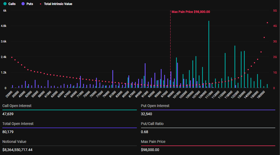Com opções de Bitcoin avaliadas em US$ 8,36 bilhões e Ethereum em US$ 1,94 bilhão, os traders estão se preparando para potencial volatilidade.