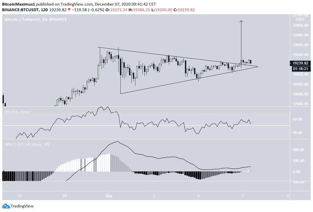 Um rompimento que percorra toda a altura do padrão levaria o BTC um pouco acima de $ 20.800.