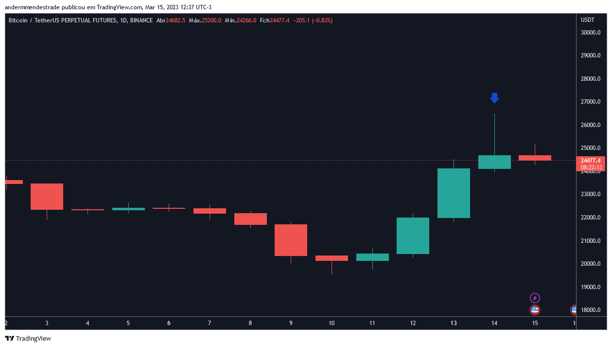 Por fim, existe o fator Binance. A maior exchange de criptomoedas do mundo foi rápida em antecipar uma possível crise bancária. Além de afirmar não possuir exposição ao Silicon Valley Bank, a empresa converteu US$ 1 bilhão de suas reservas em stablecoins para Bitcoin e Ethereum. Esse movimento gerou uma enorme pressão de compra que ajudou a impulsionar o preço do BTC.