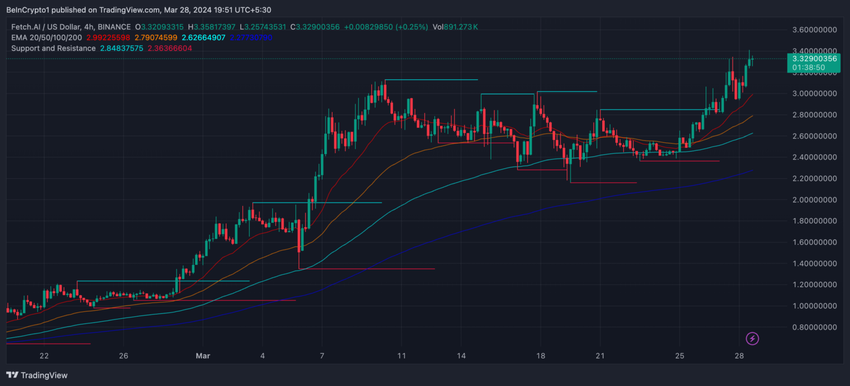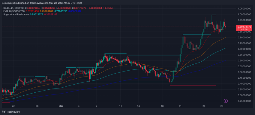A empresa anunciou recentemente que transferirá US$ 95 milhões para o fundo tokenizado da BlackRock. Seu relacionamento com grandes players pode ajudar a aumentar ainda mais a confiança na ONDO. Suas linhas de EMA estão atualmente extremamente otimistas, e poderemos ver o ONDO atingindo US$ 1 ou mais muito em breve, quebrando seu máximo histórico anterior (ATH) de US$ 0,971 em 25 de março.