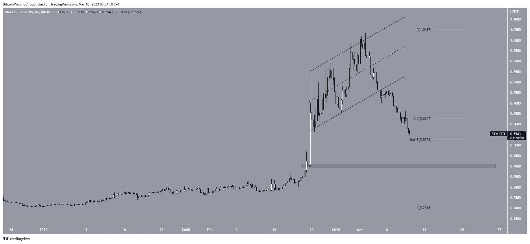 A Stacks caiu desde que atingiu a máxima de US$ 1,05 em 1º de março. A altcoin caiu de um canal paralelo ascendente em 4 de março, atingindo a mínima de US$ 0,59 em 9 de março.