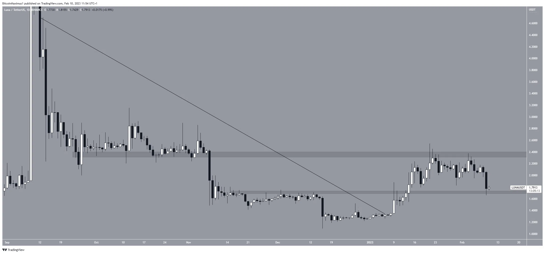 A LUNA saiu de uma linha de resistência de baixa em 6 de janeiro. Enquanto o movimento levou a uma alta de US$ 2,54 em 21 de janeiro, a moeda lutou para sustentar este impulso.