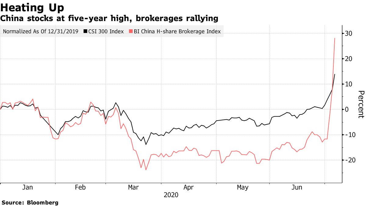 Muitos analistas de mercado estão alertando que a alta das ações compartilha semelhanças com a bolha do mercado de ações chinês de 2015. Naquela época, o governo chinês abertamente incentivou os investidores de varejo a comprar ações.