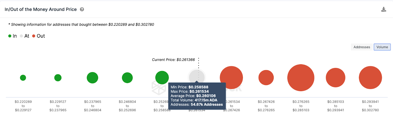 Sponsored SponsoredOs dados In/Out of Money Around Price, que retratam a distribuição do preço de compra dos atuais detentores de Cardano, também sustentam esta previsão.