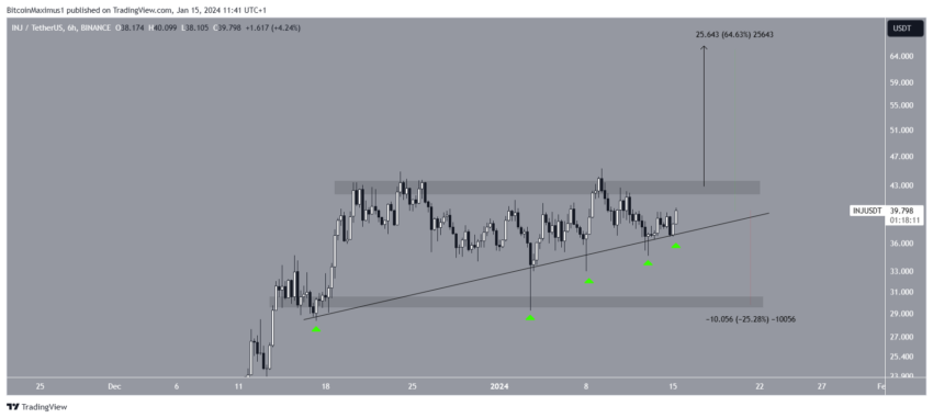 A Injective (INJ) é negociada dentro de um padrão de triângulo ascendente desde 16 de dezembro. Os triângulos ascendentes são considerados padrões de alta, o que significa que levam a rompimentos na maioria das vezes.