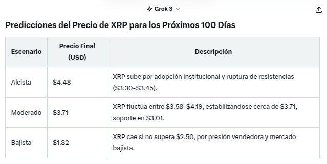 A inteligência artificial Grok, integrada à plataforma X e associada a Elon Musk, mais uma vez capturou a atenção do ecossistema cripto. Sua última previsão sobre a evolução do preço do XRP nos próximos 100 dias gerou discussões entre traders e analistas.