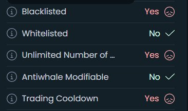 Cada criptoativo tem um DEXTscore baixo e alguns avisos na seção de detalhes do contrato de seus links DEXTools, como “tenha cuidado ao comprar novas moedas DEX”.