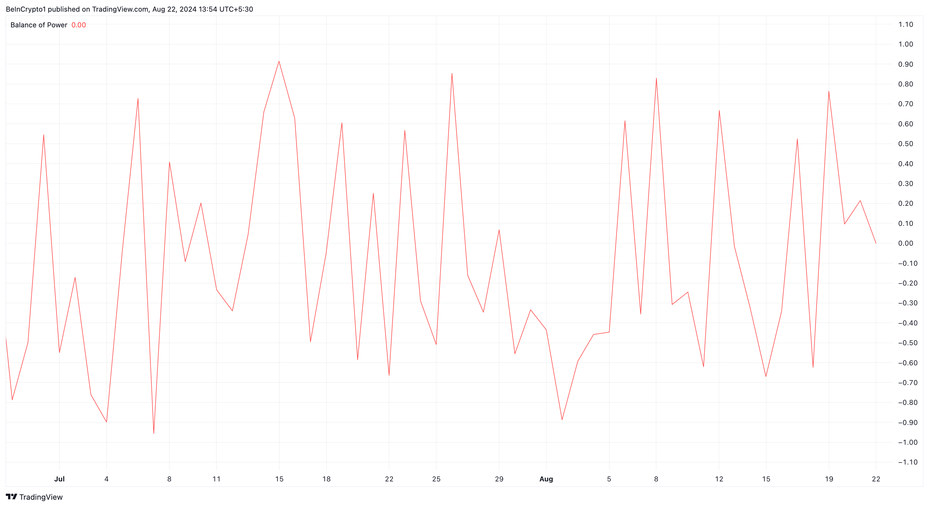 Mas nas últimas semanas, e até o momento da redação, isso não aconteceu. Além disso, o Balanço de Poder (BoP) no gráfico diário virou para baixo e está negativo. O BoP é um indicador técnico baseado em preço que mede a força dos compradores e vendedores no mercado.