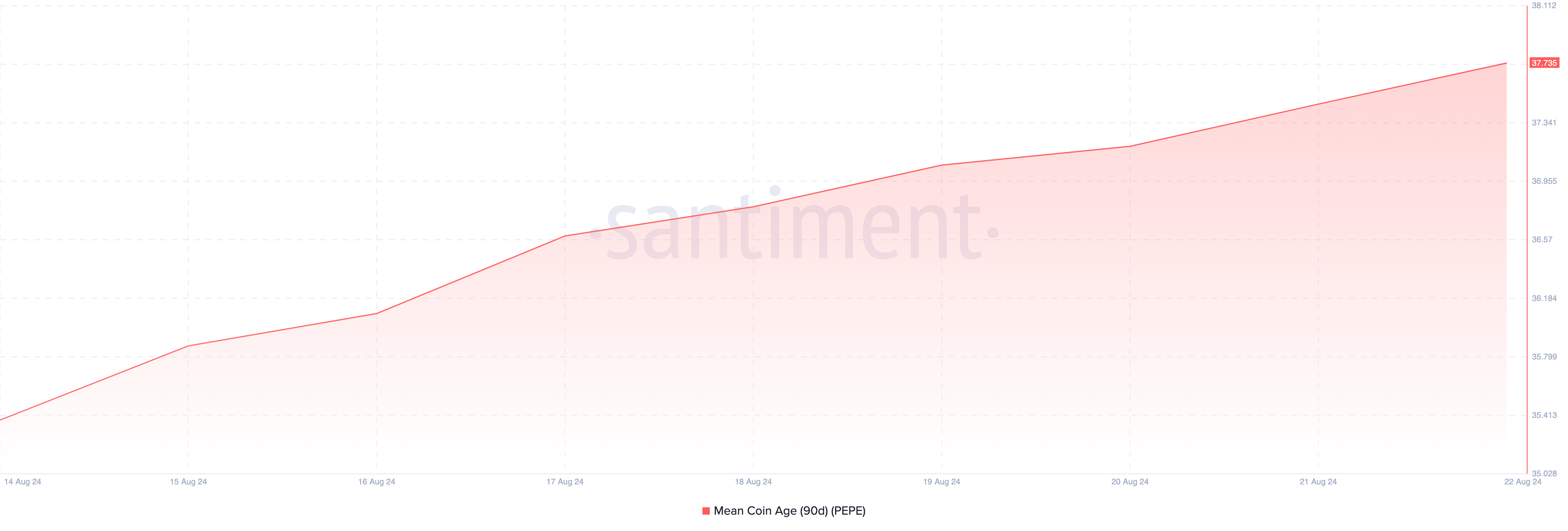 Entretanto, um aumento, como o que está acontecendo com PEPE, sugere que moedas mantidas há muito tempo estão sendo reintroduzidas no mercado. Isso geralmente leva a uma atividade de transação aumentada e pode ser um prenúncio de vendas, à medida que os detentores liberam tokens que mantiveram por um longo período.