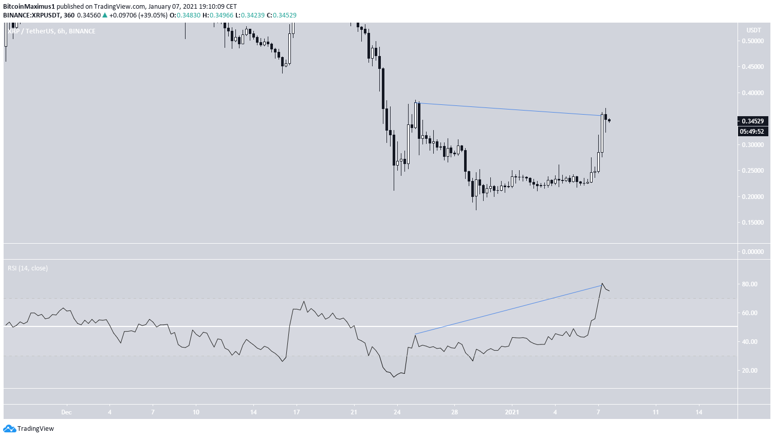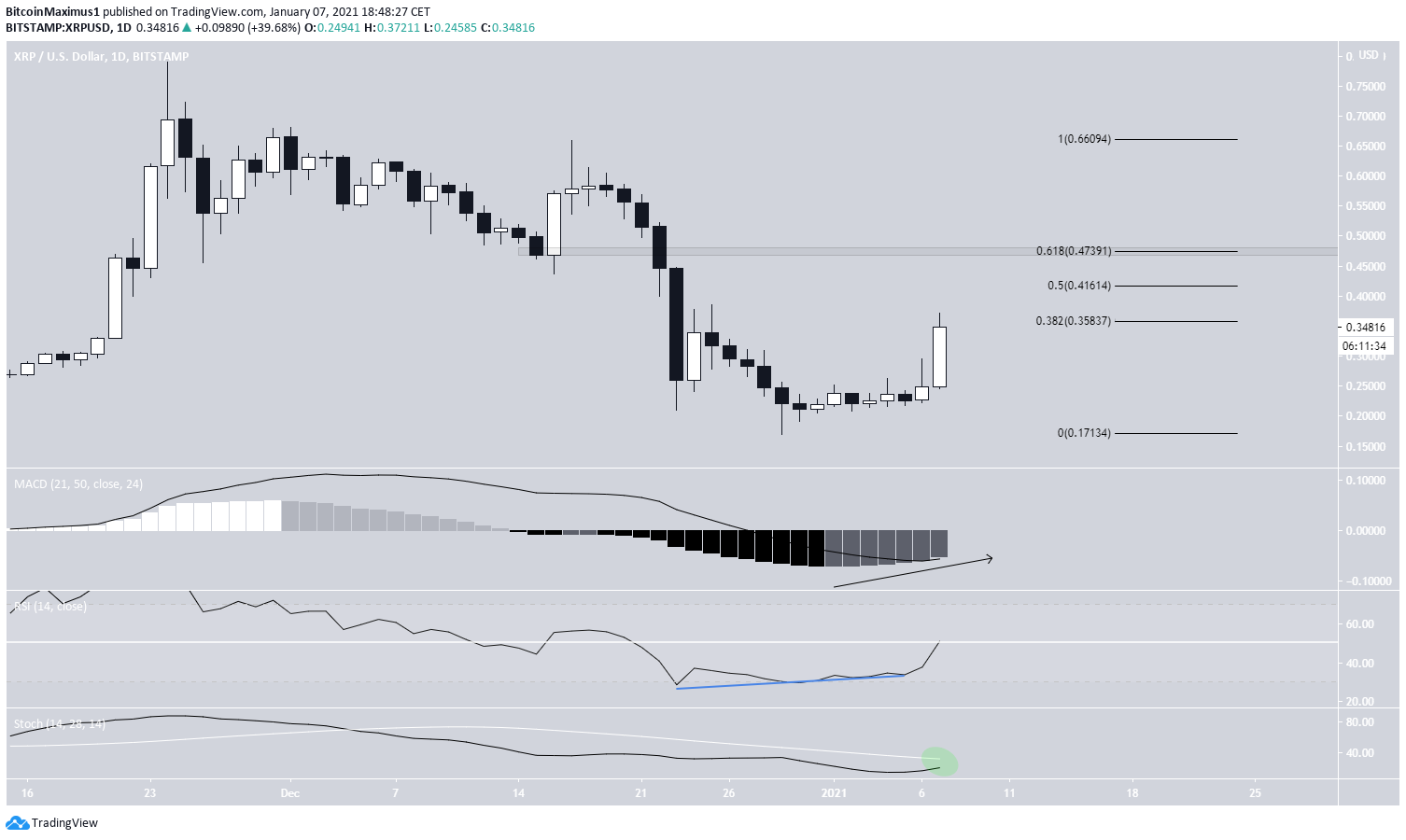 No entanto, ela tem subido gradualmente desde então e começou uma alta significativa no dia 7 de janeiro. Até agora, o preço subiu 40% no dia. O aumento foi precedido por considerável divergência de alta no RSI e um aumento no MACD.