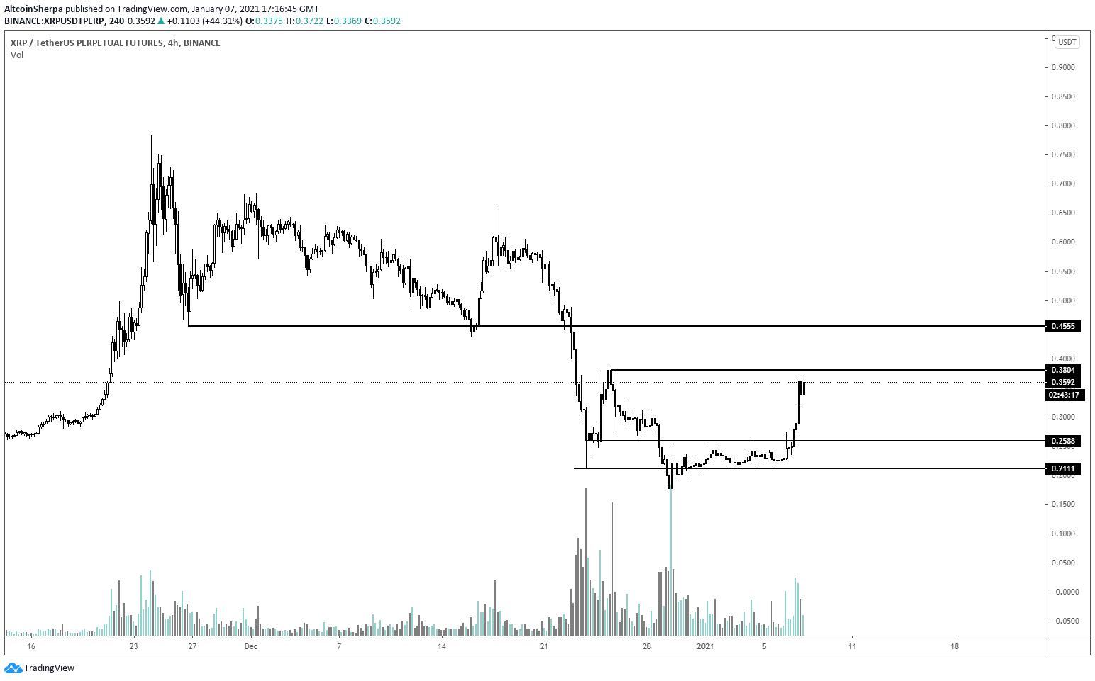 Após uma queda significativa, o preço da XRP iniciou um movimento considerável no dia 7 de janeiro, chegando a subir mais de 40% no dia.