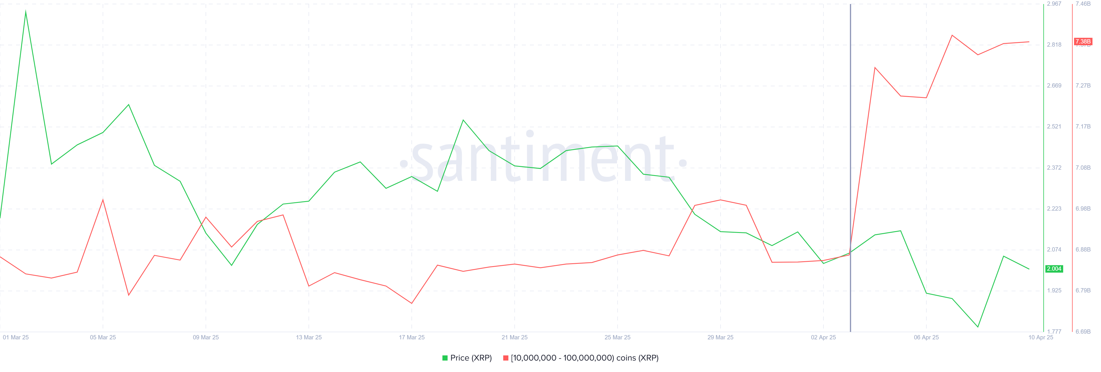 As baleias de XRP têm acumulado ativamente tokens na última semana, mostrando um claro sinal de confiança na altcoin. Em apenas sete dias, endereços que possuem entre 10 milhões e 100 milhões de tokens XRP compraram coletivamente mais de 510 milhões de XRP, avaliados em mais de US$ 1 bilhão.