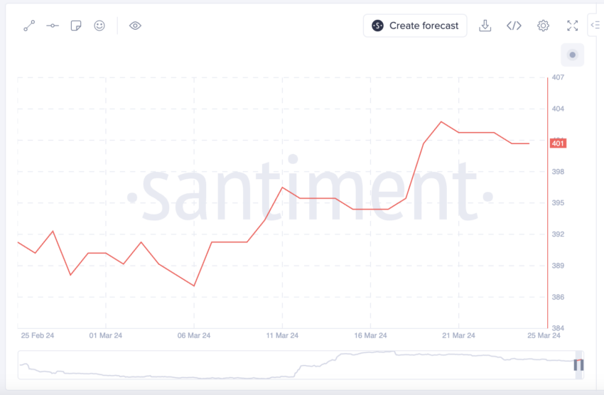 No entanto, depois de atingir US$ 0,57 em 20 de março, essa tendência de acumulação foi interrompida e a quantidade desses endereços de alto volume permaneceu praticamente inalterada. Apesar da estagnação nos números de baleias na semana seguinte, surgiu um ponto positivo.