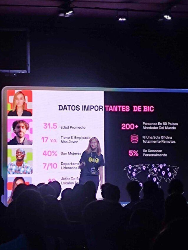 A exposição partiu de um olhar em primeira pessoa. A fundadora do BeInCrypto destacou estatísticas relacionadas à idade das pessoas que compõem o grupo de trabalho e a presença decisiva de mulheres neste novo segmento.