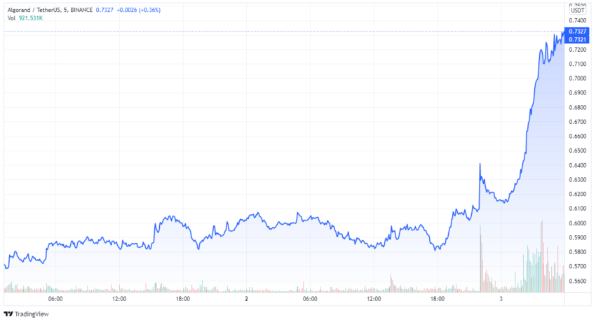 O token ALGO subiu mais de 20% nas últimas 24 horas após um acordo de patrocínio para a Copa do Mundo da FIFA e agora é negociado em US$ 0,72. No dia anterior, o ativo estava precificado em US$ 0,58.