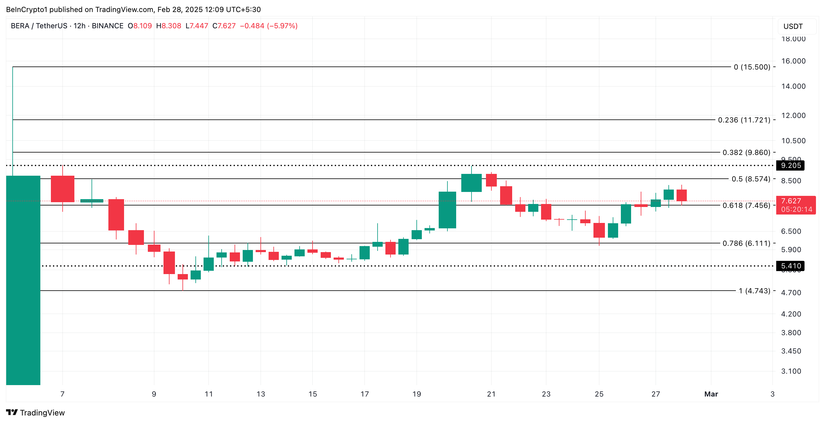 No gráfico diário, a moeda está sendo negociada acima do suporte em US$ 7,45. Se a demanda se fortalecer, a BERA pode subir ainda mais deste nível para ser negociada a US$ 8,57. Uma quebra bem-sucedida desta resistência pode impulsionar a altcoin de volta acima de US$ 9.