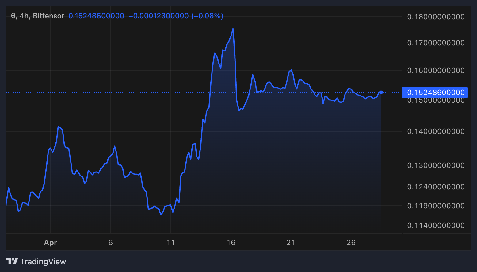 Se o projeto recuperar seu impulso anterior, sendo a maior sub-rede na Bittensor, isso pode amplificar seus ganhos por meio de efeitos de rede e desencadear uma forte tendência de alta, com o preço voltando para a faixa de US$ 0,40.