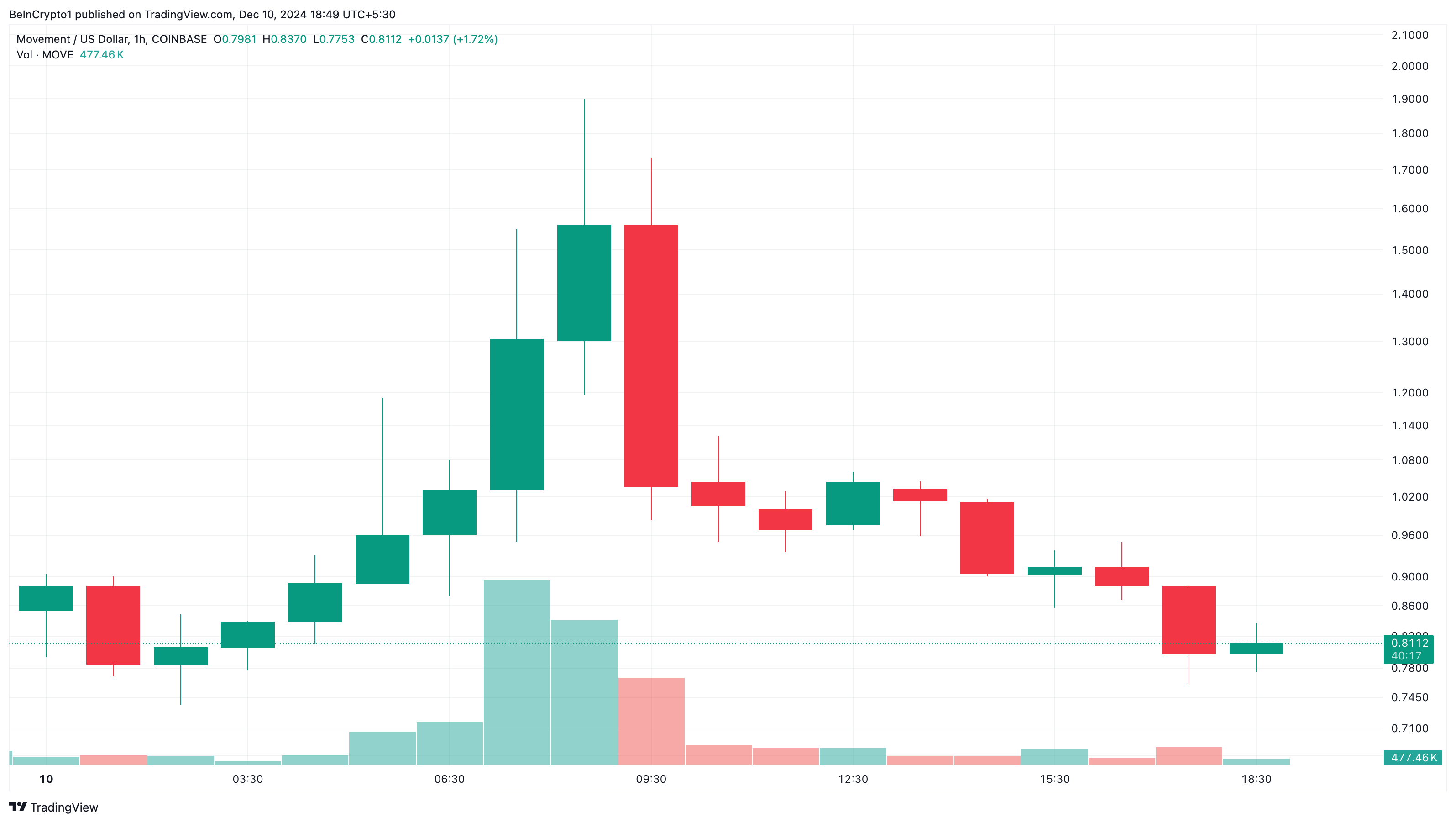 Além disso, a altcoin está em destaque porque a Binance a listou, e assim, o preço da MOVE aumentou 25% em 24 horas. Enquanto o preço inicialmente atingiu US$ 1,56, agora caiu para US$ 0,81, sugerindo que alguns dos destinatários elegíveis do airdrop estão vendendo.