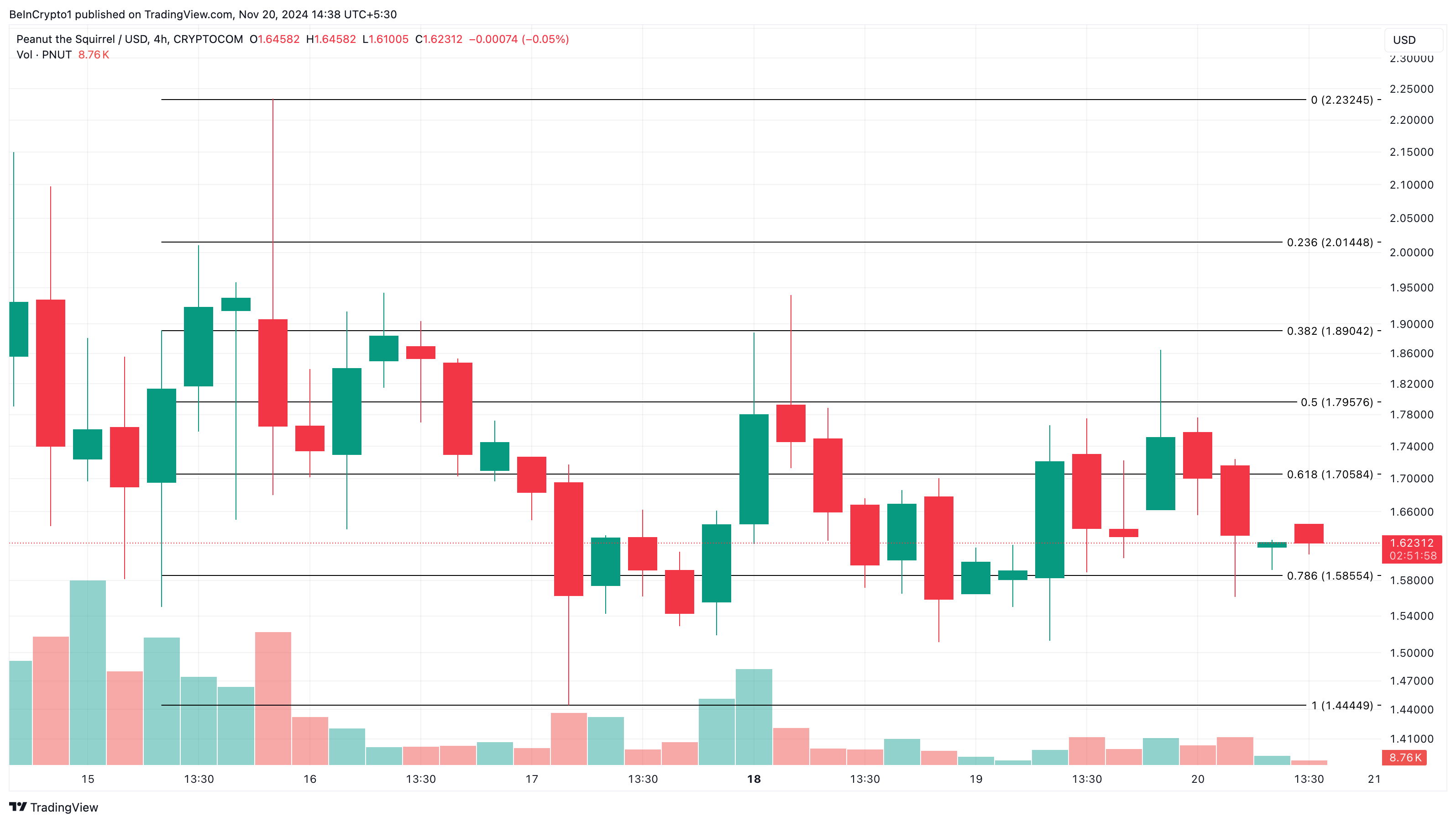 Por outro lado, se a memecoin vir um aumento significativo no volume de negociação, essa tendência pode mudar de baixa para alta. Se isso acontecer, então a PNUT pode subir para US$ 2.01.