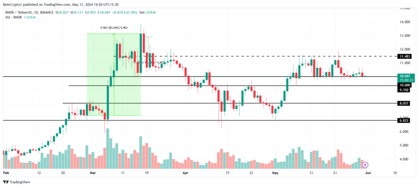 Assim, se o crescimento continuar, o RNDR poderá se beneficiar e escapar da fase de consolidação entre US$ 11,4 e US$ 10,0.