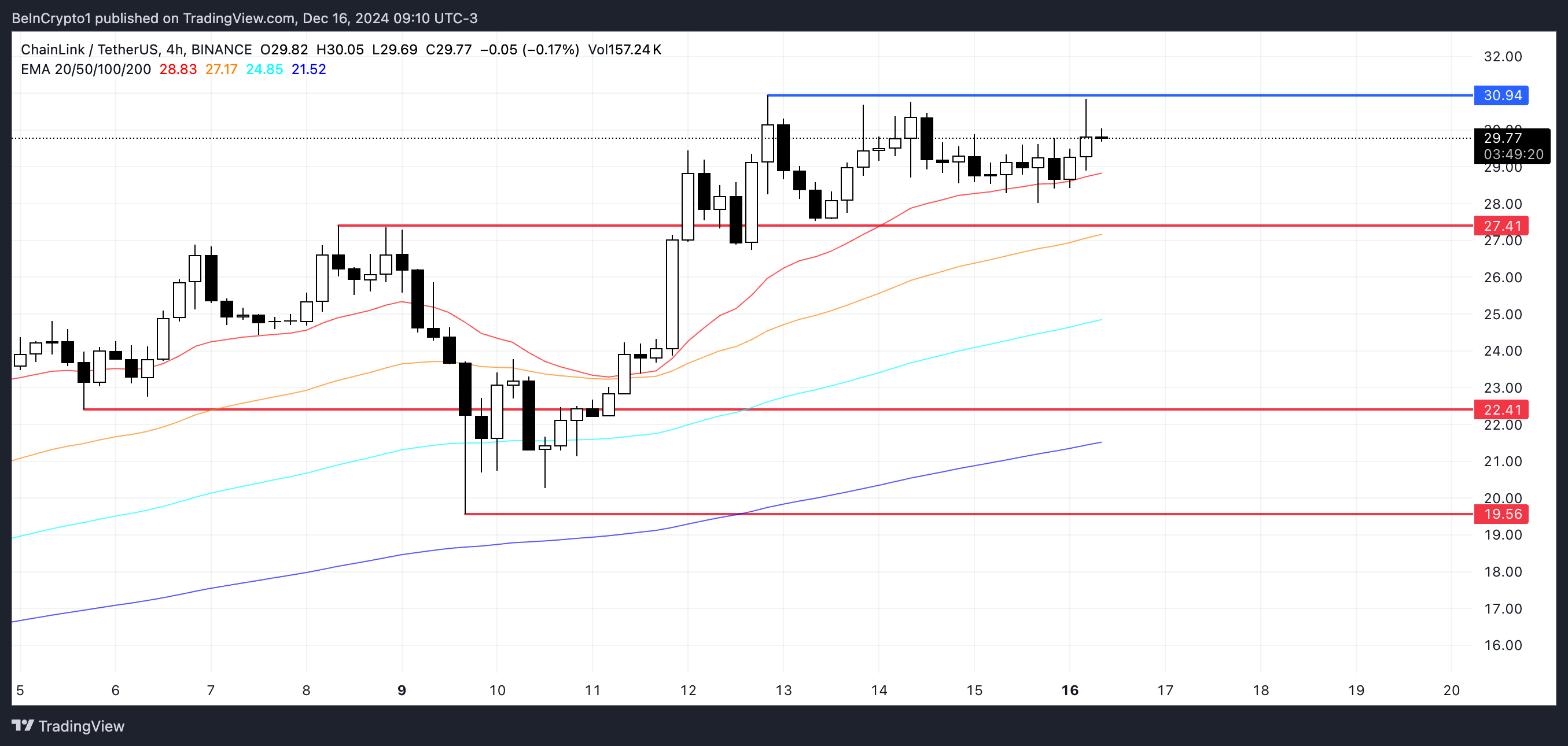 A Chainlink subiu quase 20% na última semana, alcançando US$ 30,94, seu preço mais alto desde novembro de 2021. Este rali destaca forte pressão de compra e renovado interesse dos investidores, posicionando a LINK para possíveis ganhos adicionais se a tendência atual se mantiver.