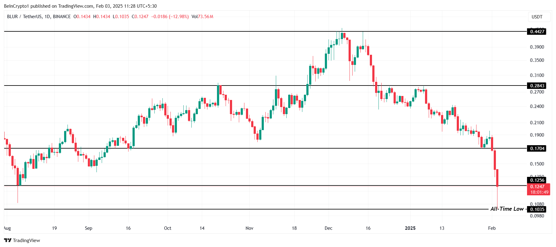 SponsoredEsta mínima histórica é a primeira desde agosto de 2024, destacando a vulnerabilidade da altcoin. Se a BLUR continuar sua trajetória atual, poderá cair abaixo do limite de US$ 0,100, erodindo ainda mais a confiança dos investidores. A pressão de venda contínua pode prolongar a tendência de baixa, levando a maiores perdas.