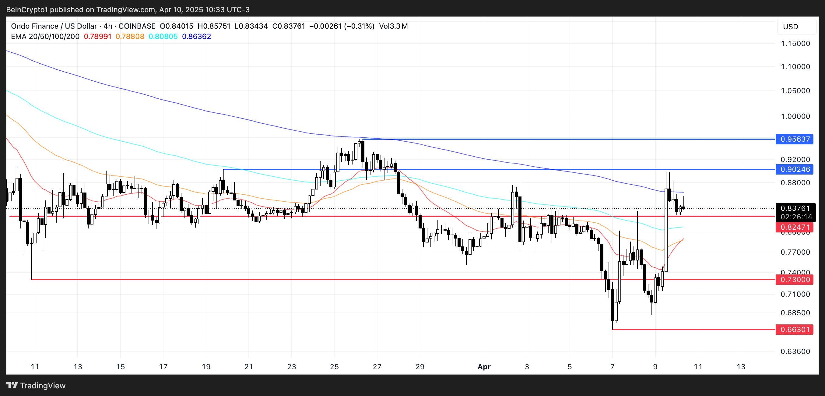 A ONDO, um dos principais tokens no espaço RWA, está mostrando sinais de força nos gráficos, com um “cruz dourada” quase se formando.