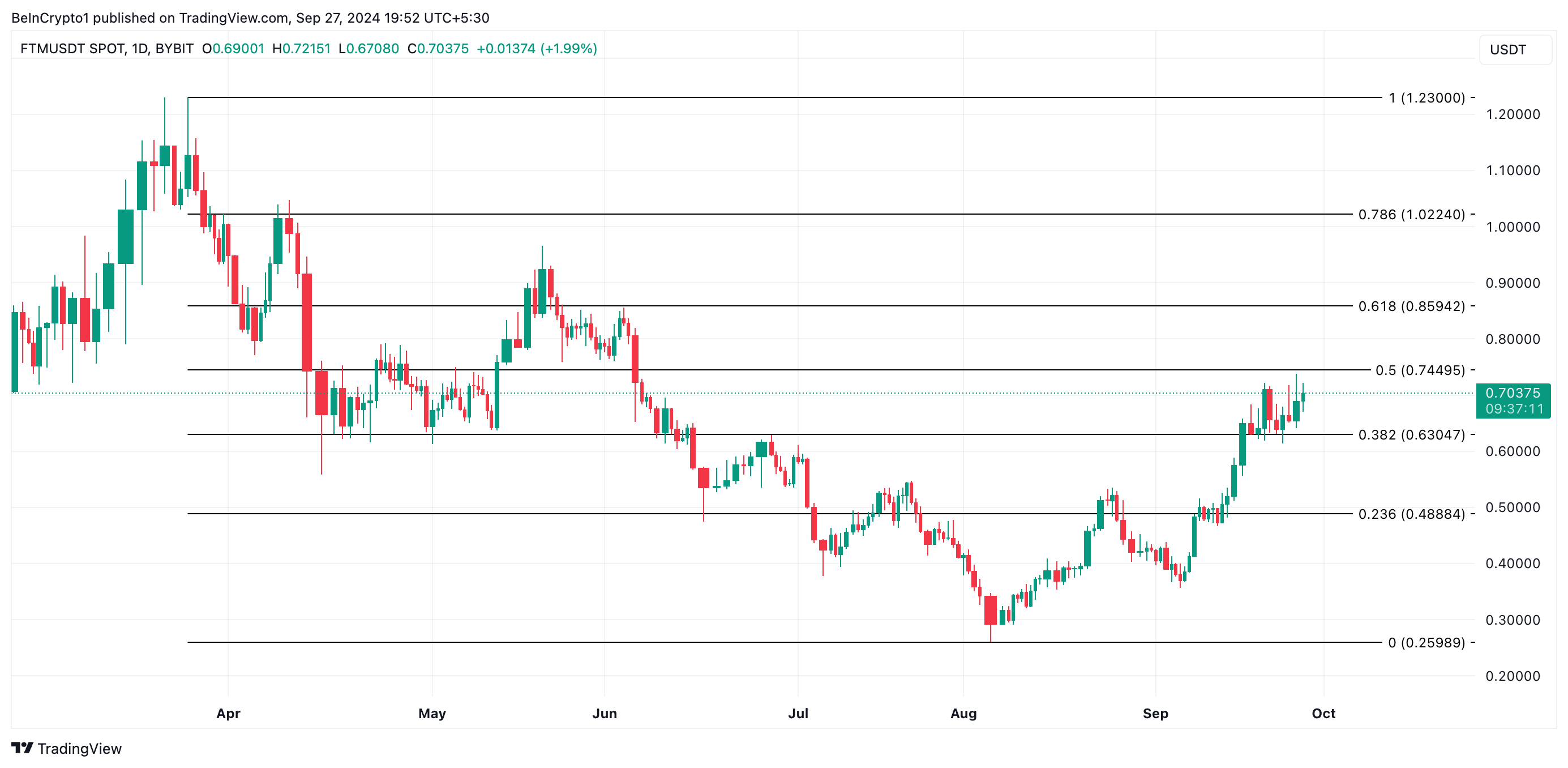 Com o aumento da expectativa para o lançamento na mainnet, o preço do FTM pode subir para US$ 1,02, abrindo caminho para que alcance o pico de cinco meses de US$ 1,23.