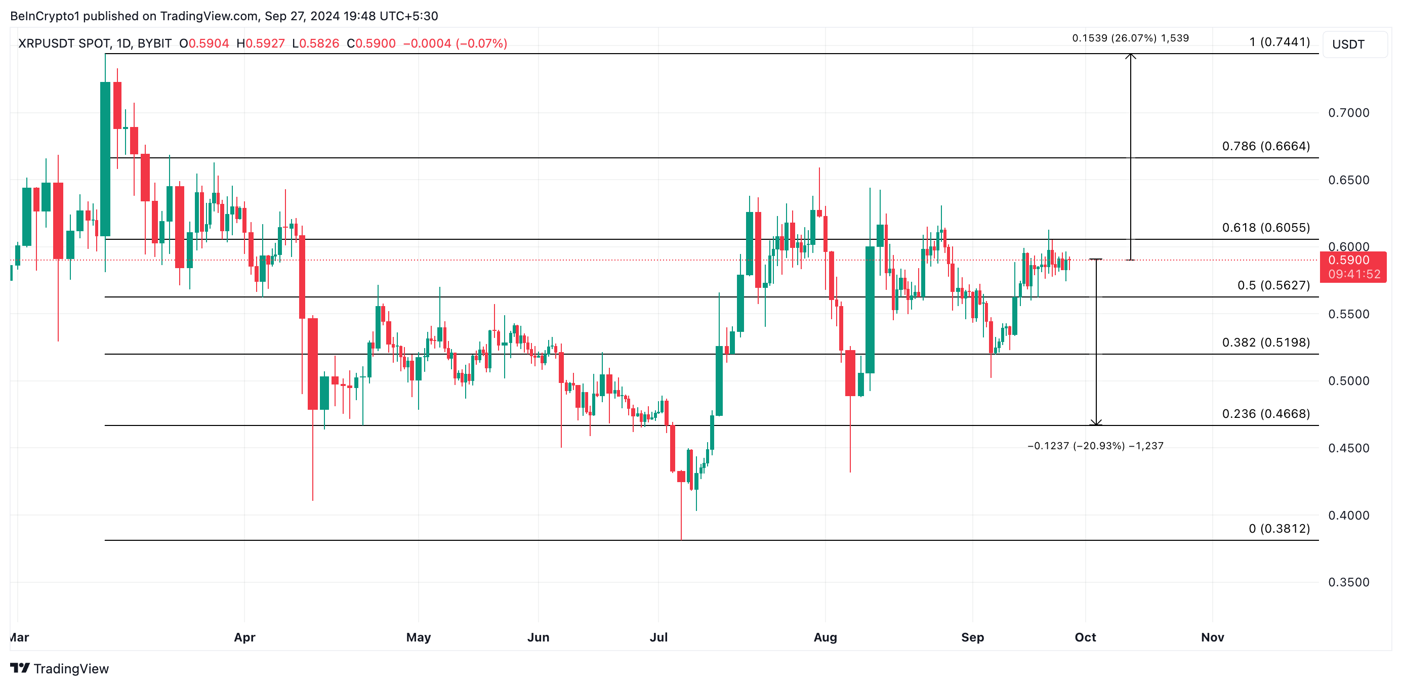 Há especulações em andamento de que a Comissão de Valores Mobiliários dos EUA (SEC) recorrerá da decisão da juíza Analisa Torres de 13 de julho no caso Ripple. O prazo para apresentar esse recurso é 7 de outubro. Assim, se o regulador prosseguir com isso, XRP pode perder alguns de seus ganhos recentes.