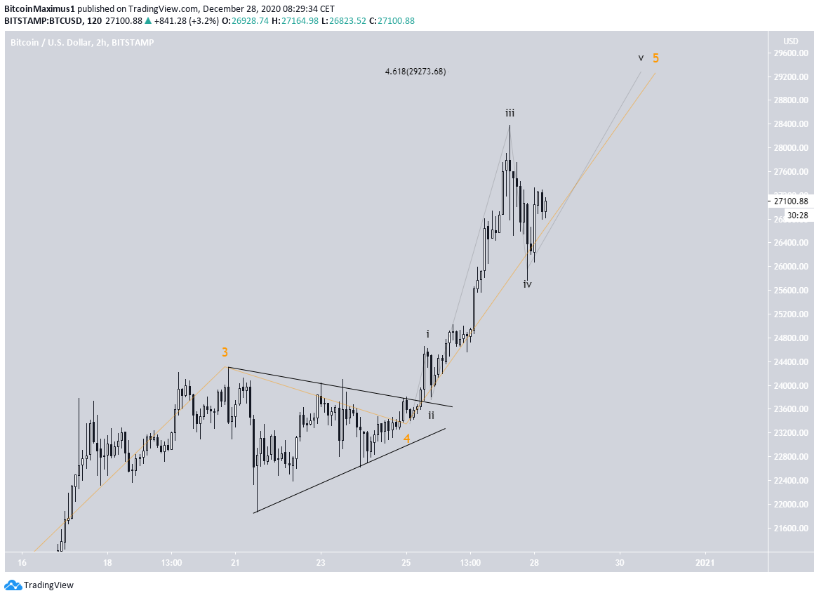 Espera-se que o preço do Bitcoin complete mais um movimento ascendente de curto prazo em direção a $ 29.800 antes de iniciar uma correção.