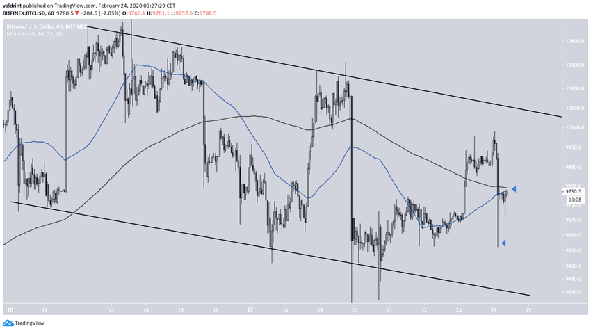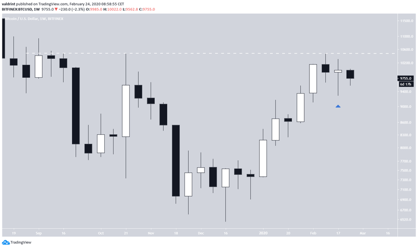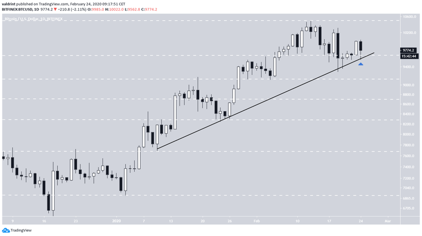 O preço do BTC inverteu com sucesso o nível de US $ 9650 como suporte com um candle de alta em 23 de fevereiro e o validou posteriormente com um longo pavio mais baixo no atual candle diário.