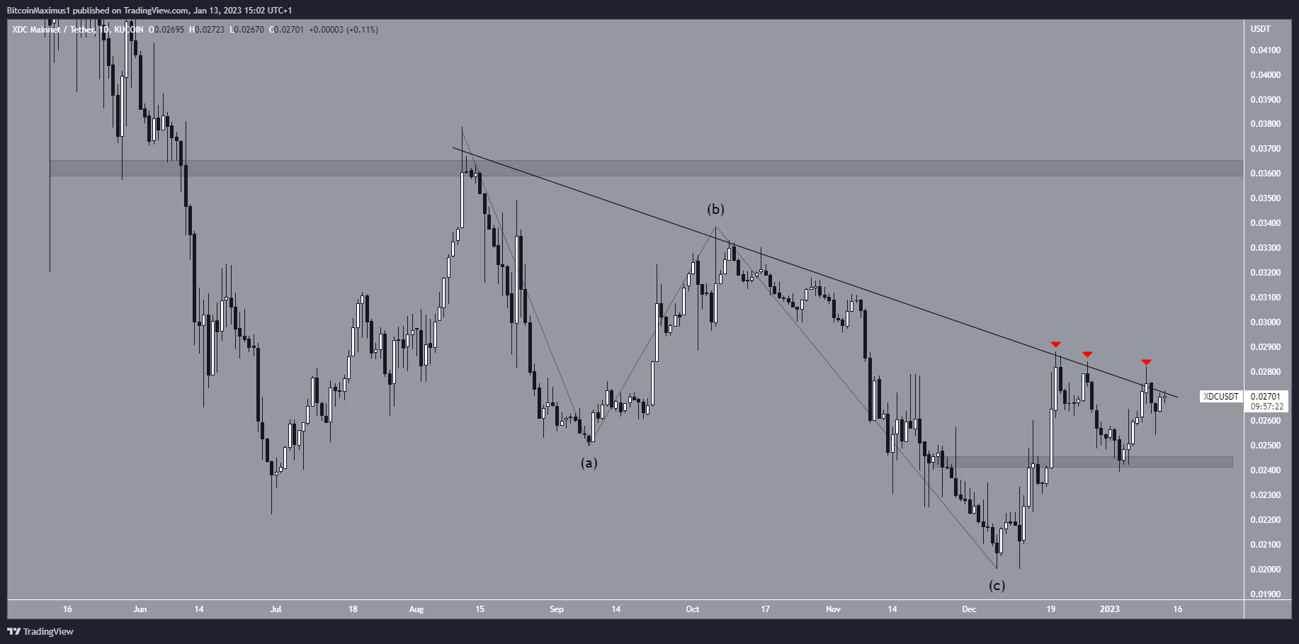 Se isso ocorrer, o XDC pode buscar a região de US$ 0,036. Se não for bem sucedido, uma queda em direção à área de suporte de US$ 0,024 pode começar.
