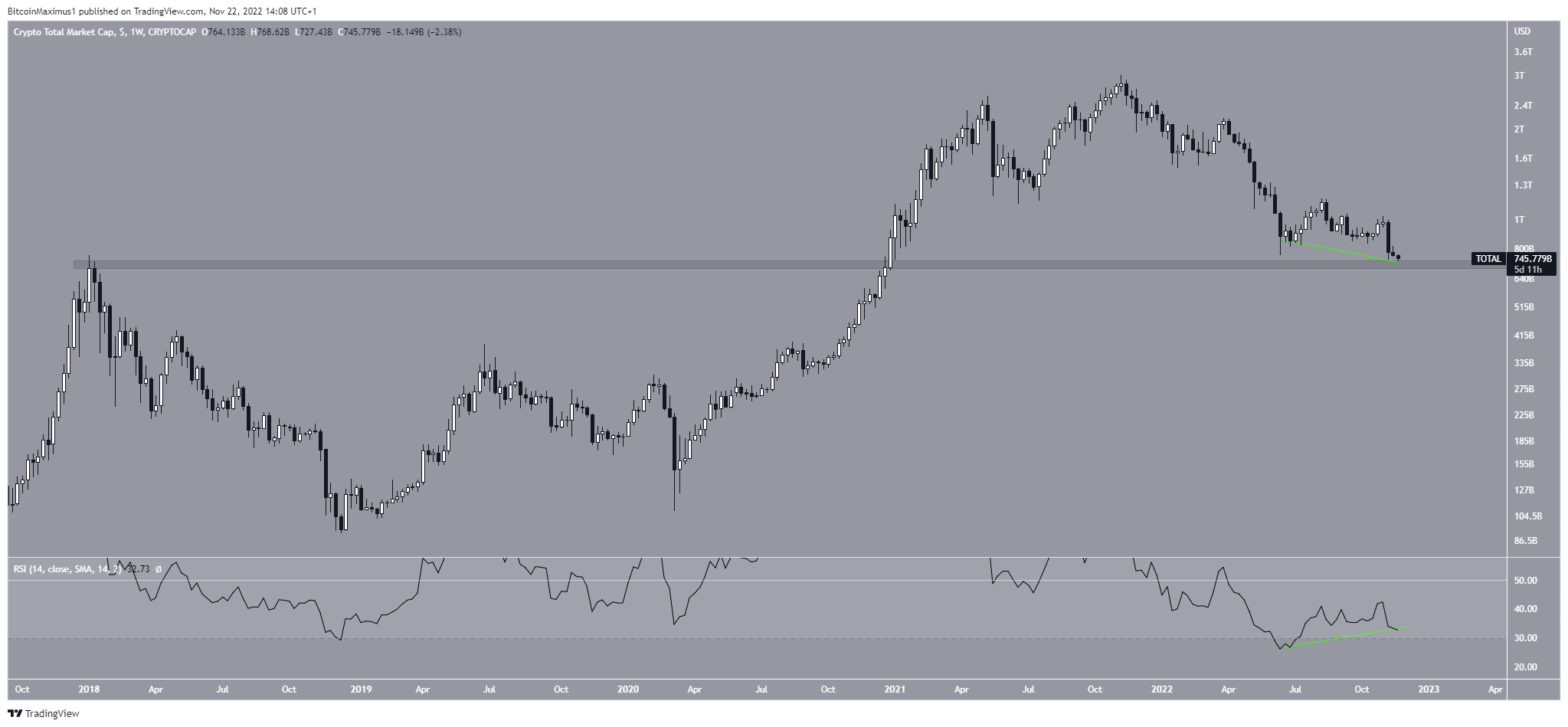 Portanto, a capitalização do mercado cripto saltar ou cair abaixo da área de suporte de US$ 760 bilhões, determinará se a previsão do mercado é otimista ou pessimista. Como um salto também validaria uma divergência de alta no RSI semanal, seria considerado um sinal vital de um fundo para os preços das criptomoedas.