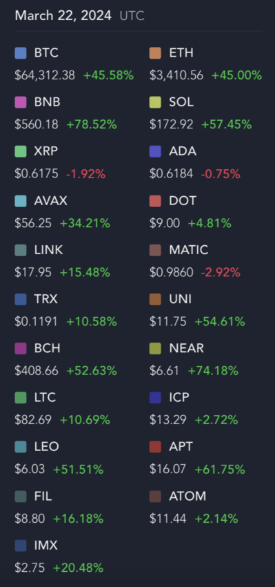 Comparando o crescimento acumulado no ano de algumas das maiores criptomoedas do mercado – excluindo stablecoins e memecoins – a MATIC está agora com prejuízo.