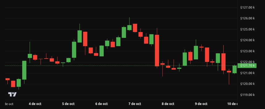 O Bitcoin liderou um movimento expressivo neste período: alcançou um novo recorde histórico acima de US$ 126 mil, o que reativou o interesse geral no mercado de cripto. Após esse pico, o preço corrigiu para se estabilizar próximo a US$ 121.337 no momento atual.
