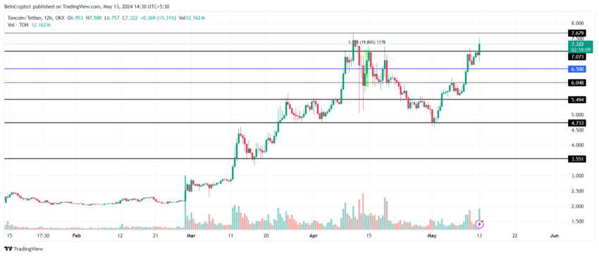 O preço da Toncoin, negociado a US$ 7,3 no fechamento da matéria, está próximo de romper a resistência de US$ 7,6. Portanto, caso rompa está região de preços, a Toncoin registrará um novo recorde histórico de preço. Assim, a altcoin está potencialmente no caminho certo para isso, observando as condições mencionadas acima.