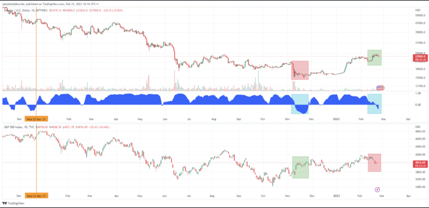 Apesar da correlação anterior, o cripto trader aponta que o Bitcoin começou a ficar atrás dos mercados de ações tradicionais.