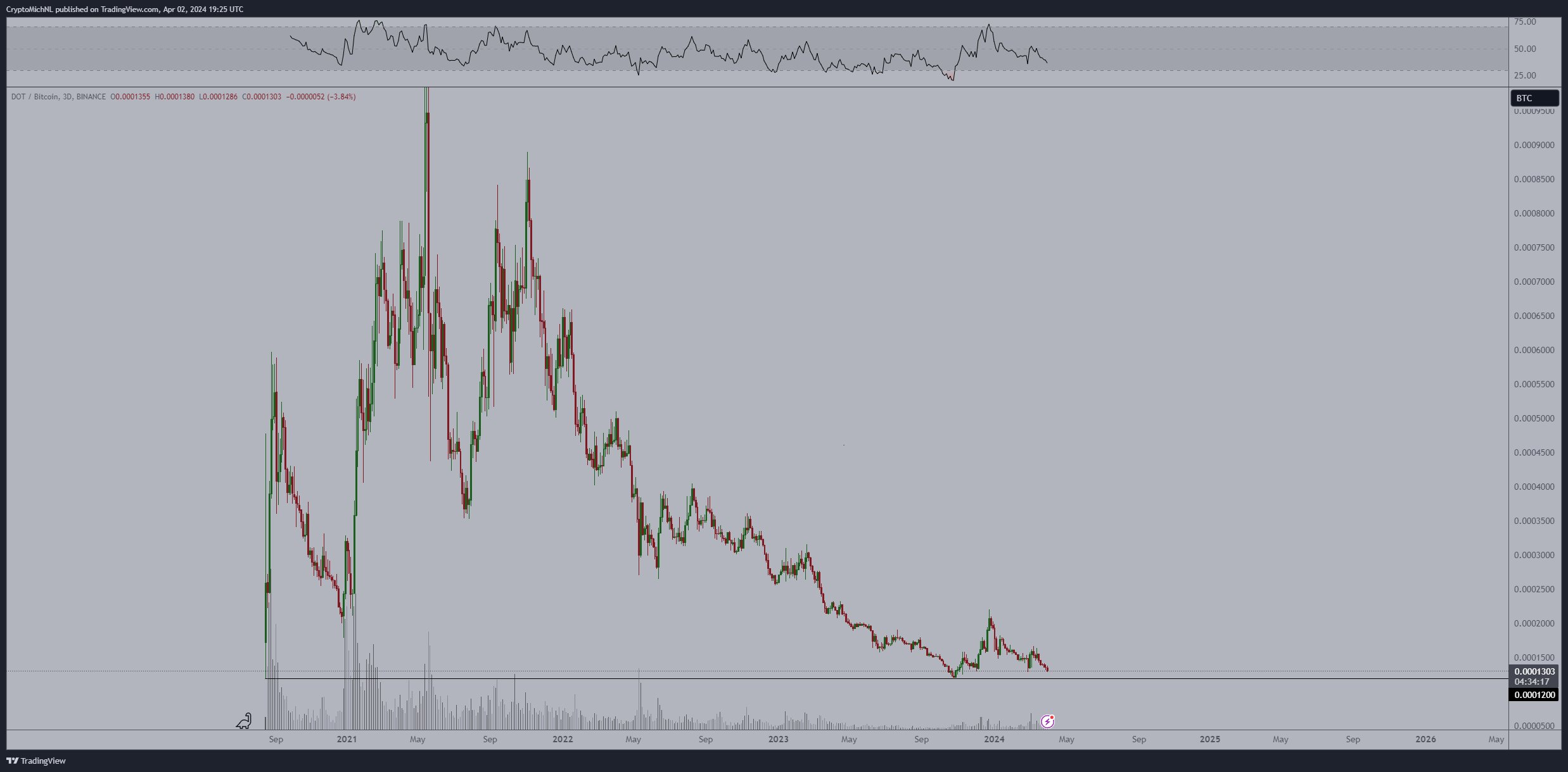 O preço da altcoin em relação ao Bitcoin está próximo do seu nível mais baixo. Dado o potencial de crescimento do mercado DeFi, este posicionamento pode ser atrativo para os investidores.