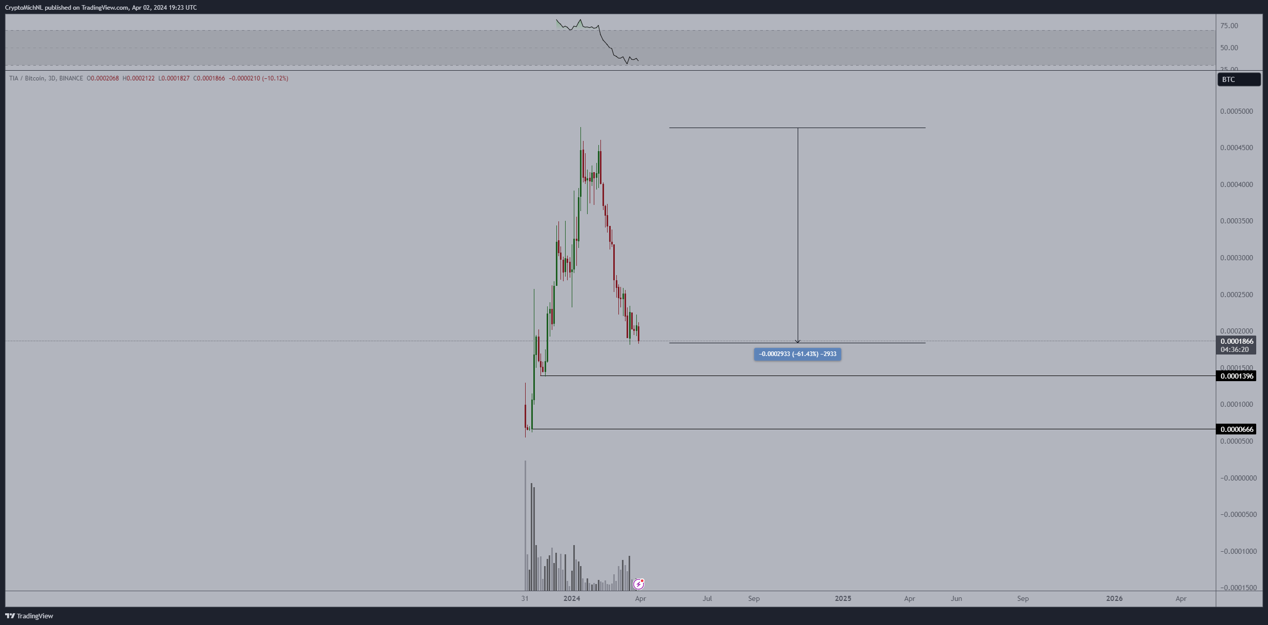 O preço da TIA caiu 61% em relação à máxima local, abrindo a oportunidade para que os investidores realizem novas compras.