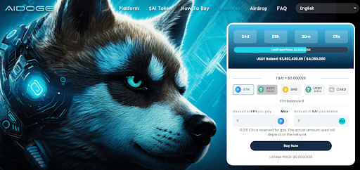 A campanha de pré-venda de AiDoge está dividida em 20 etapas no total, cada uma com aumento do preço do token AI.
