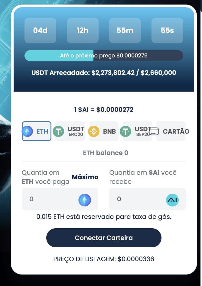 A seguir, um passo a passo de como comprar tokens $Ai aproveitando os preços promocionais da campanha de pré-venda.
