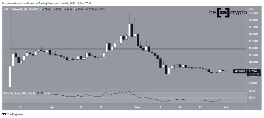 A Apecoin (APE) está subindo desde 12 de maio e até agora criou um fundo mais alto no processo.