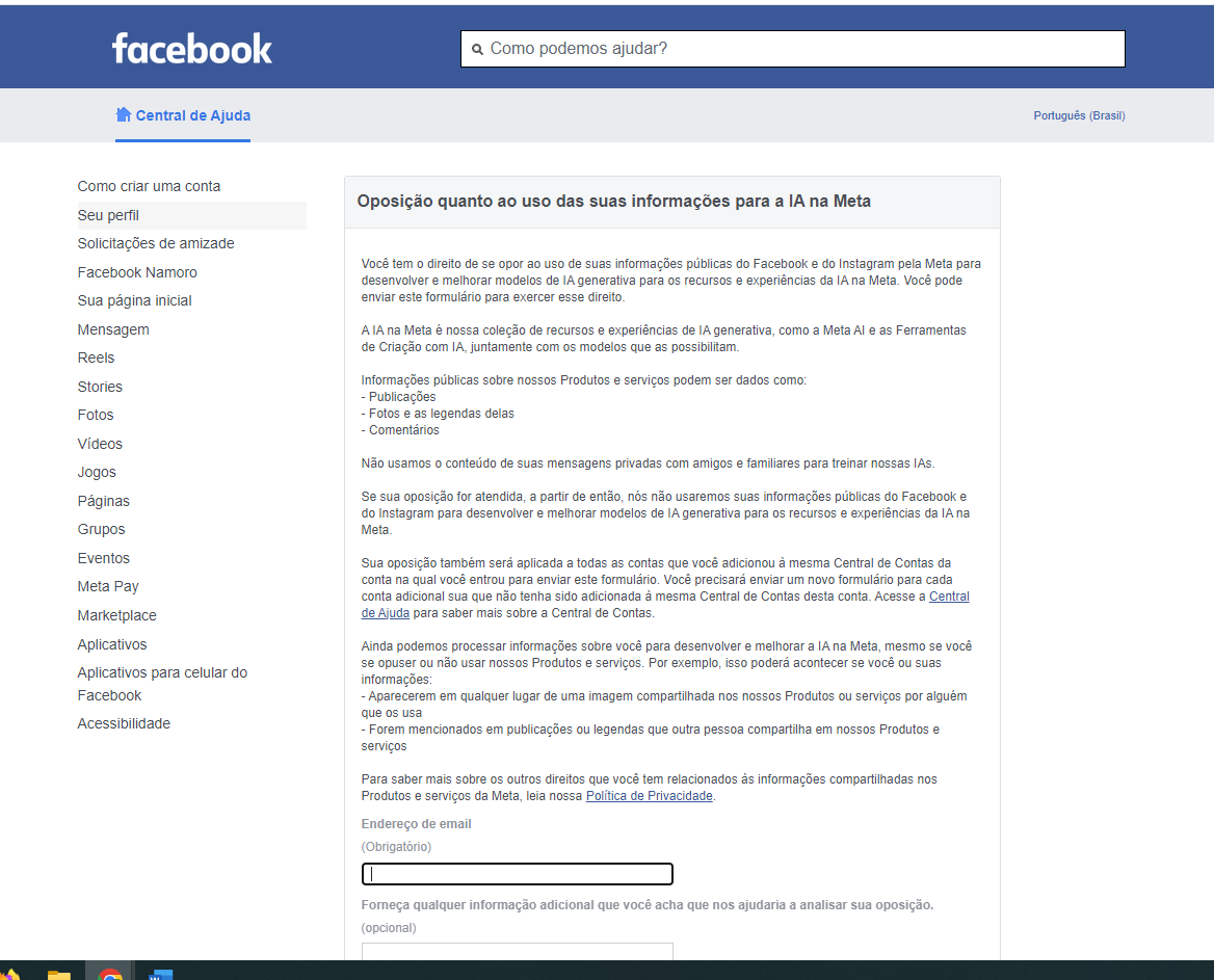 O comunicado de oposição quanto ao uso das suas informações para a IA na Meta diz: