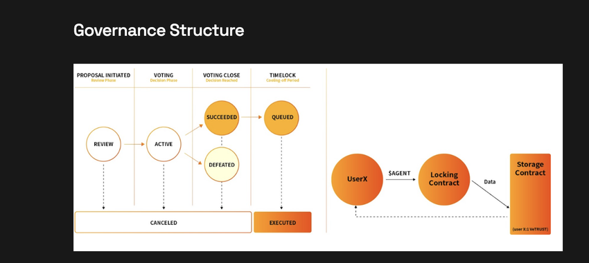 Embora o staking venha com direitos de voto, o TAG DAO permite que os detentores de tokens AGENT proponham e votem em mudanças importantes. Essas mudanças incluem atualizações de protocolo, alocações de fundos e desenvolvimento de novos recursos. Notavelmente, os detentores de APGN – Nós de Governança Premium da AgentLayer – obtêm direitos de supervotação.