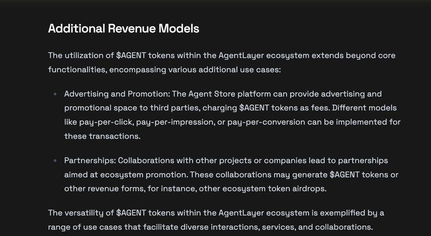 Conforme explicado, o token AGENT alimenta o ecossistema AgentLayer, que inclui: