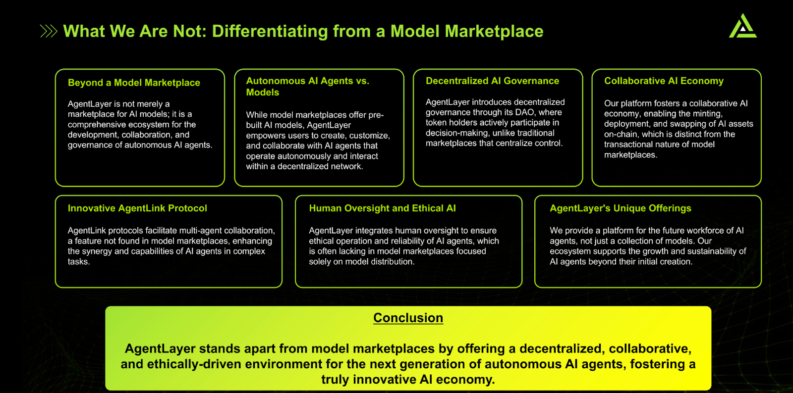 Em resumo: O AgentLayer é uma rede de IA descentralizada e complexa.