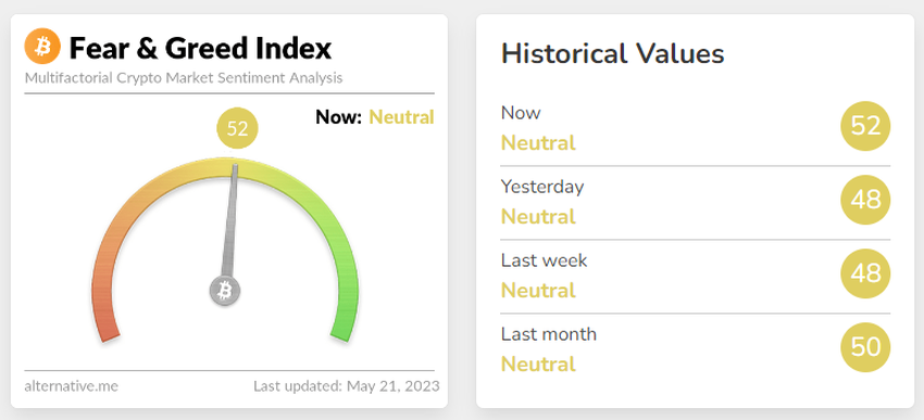 O índice Fear e Greed é uma ótima maneira de monitorar o sentimento do mercado. O índice leva em consideração vários fatores e pontos de dados, como volatilidade de preços, volume de negociação, atividade de mídia social, pesquisas e momento do mercado, para determinar o sentimento atual no mercado.