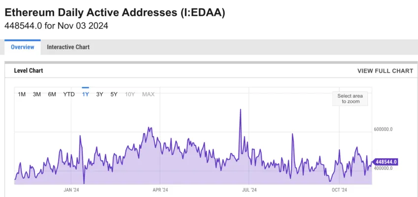 - Endereços ativos: o número de endereços ativos exclusivos aponta para a base de usuários do projeto. Pense nisso como o número de clientes exclusivos que uma empresa atende, refletindo a adoção.