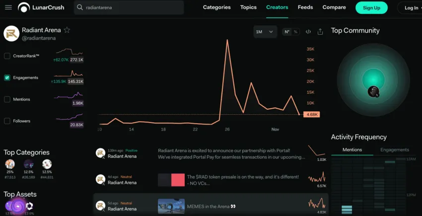 Alto engajamento da comunidade geralmente é um sinal positivo, refletindo confiança e interesse entre os usuários. Ao rastrear o sentimento e a atividade, os investidores podem obter insights sobre a popularidade e a resiliência potencial de um projeto.
