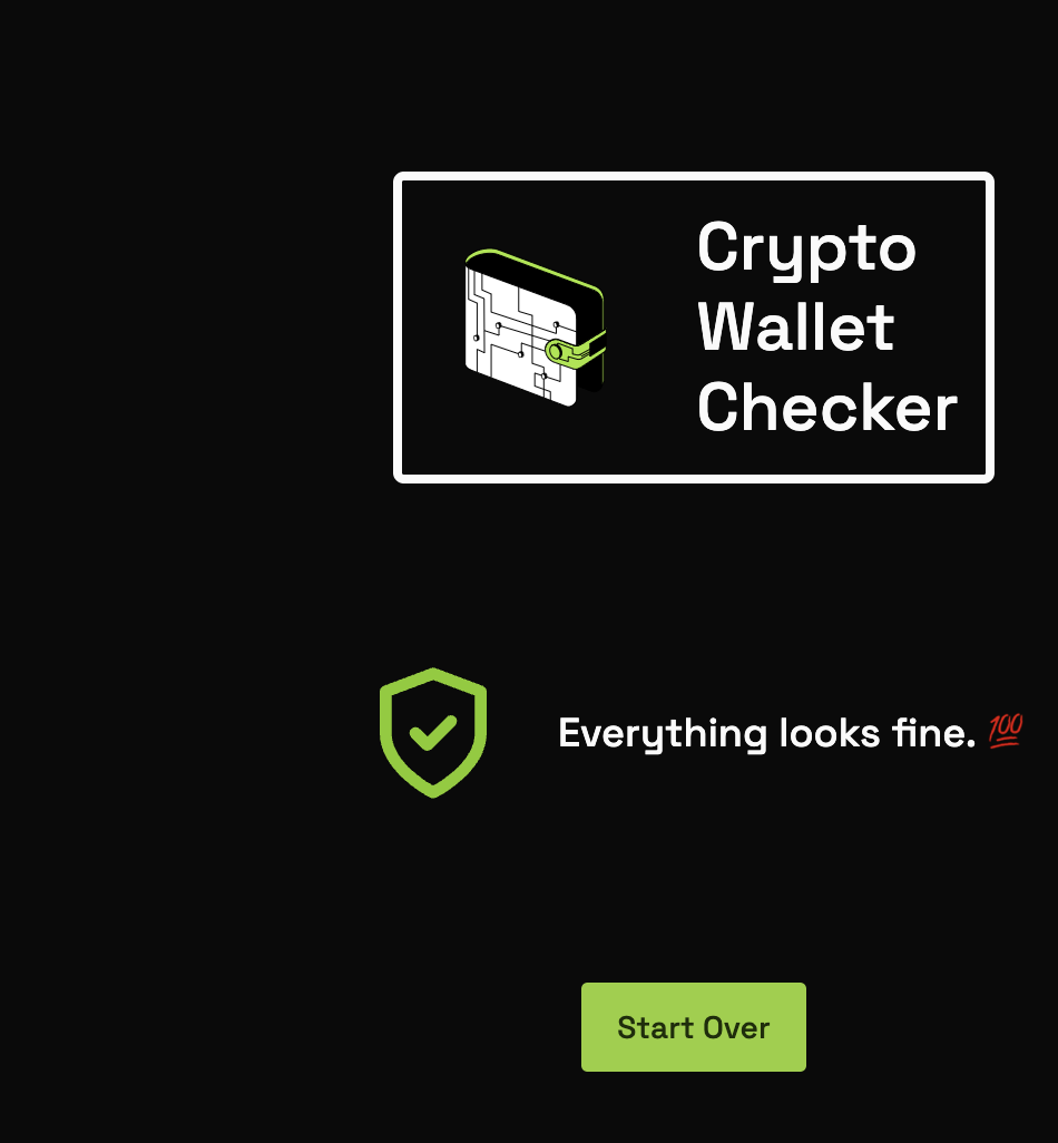 - Após conectar, você pode executar um teste. Se tudo parecer correto, o Wallet Checker retornará uma notificação positiva.